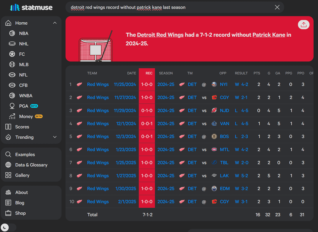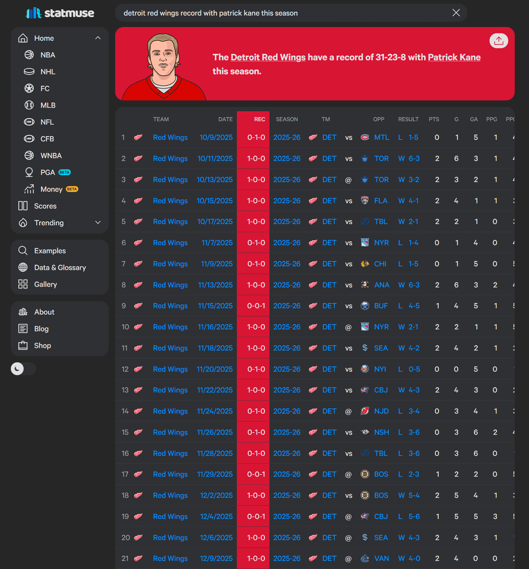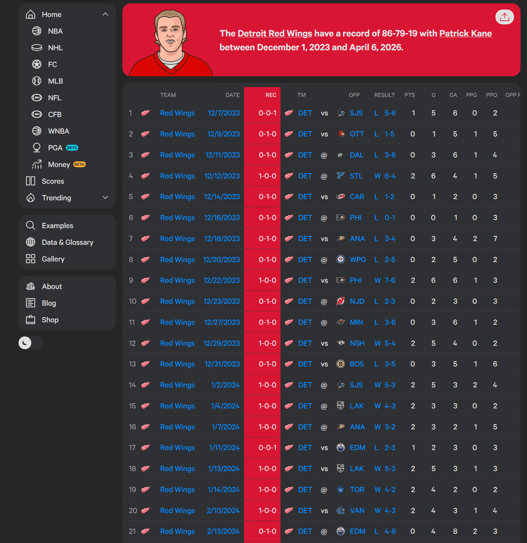 I was not a fan of bringing Kane in (fuck the Blackhawks) and it seemed like he really impacted the lockeroom in a bad way when he first got to Detroit. But its hard to say if they’re better or worse without him. I’ve come around to cheering for him, and he’s had some game winners, but I’m not 100% on him.