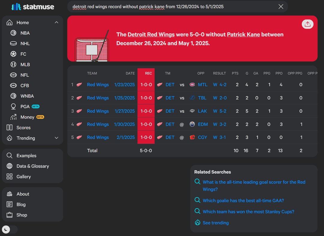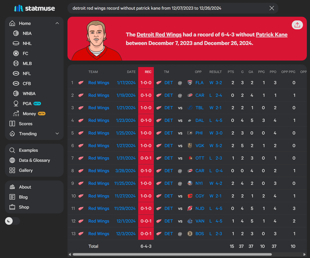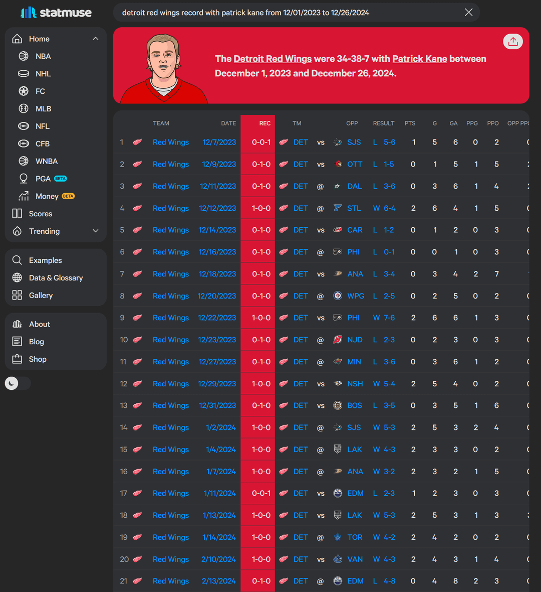 I was not a fan of bringing Kane in (fuck the Blackhawks) and it seemed like he really impacted the lockeroom in a bad way when he first got to Detroit. But its hard to say if they’re better or worse without him. I’ve come around to cheering for him, and he’s had some game winners, but I’m not 100% on him.
