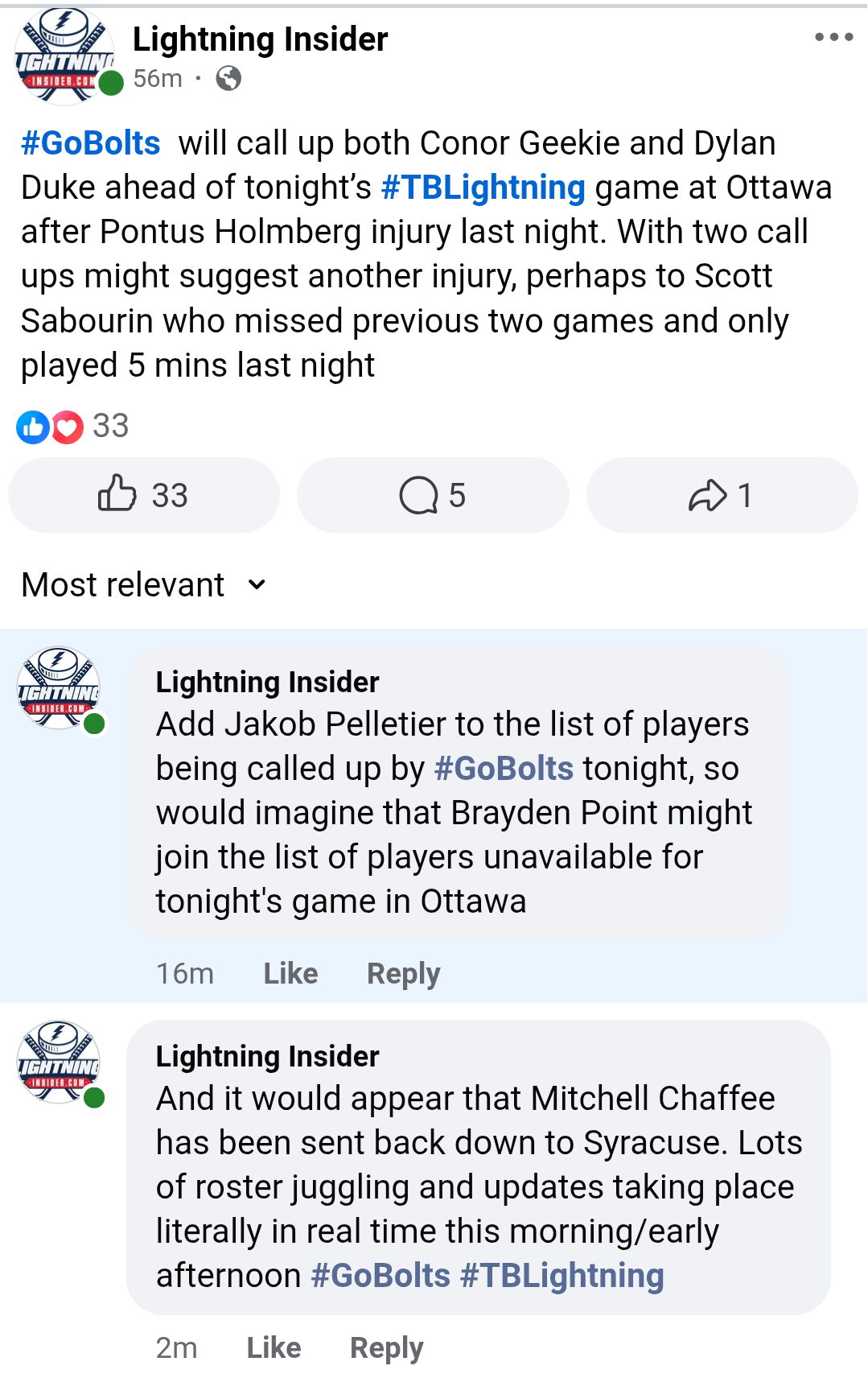 Theoretically, if we’re going to get decimated by injuries again, then this is the best time for it. Hopefully Point is day-to-day and we get Hagel and Cirelli back before the playoffs.