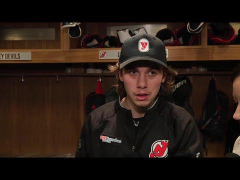 J. Hughes, Bratt, Hischier, Meier, L. Hughes et Keefe réagissent aux nouvelles de Fitzgerald