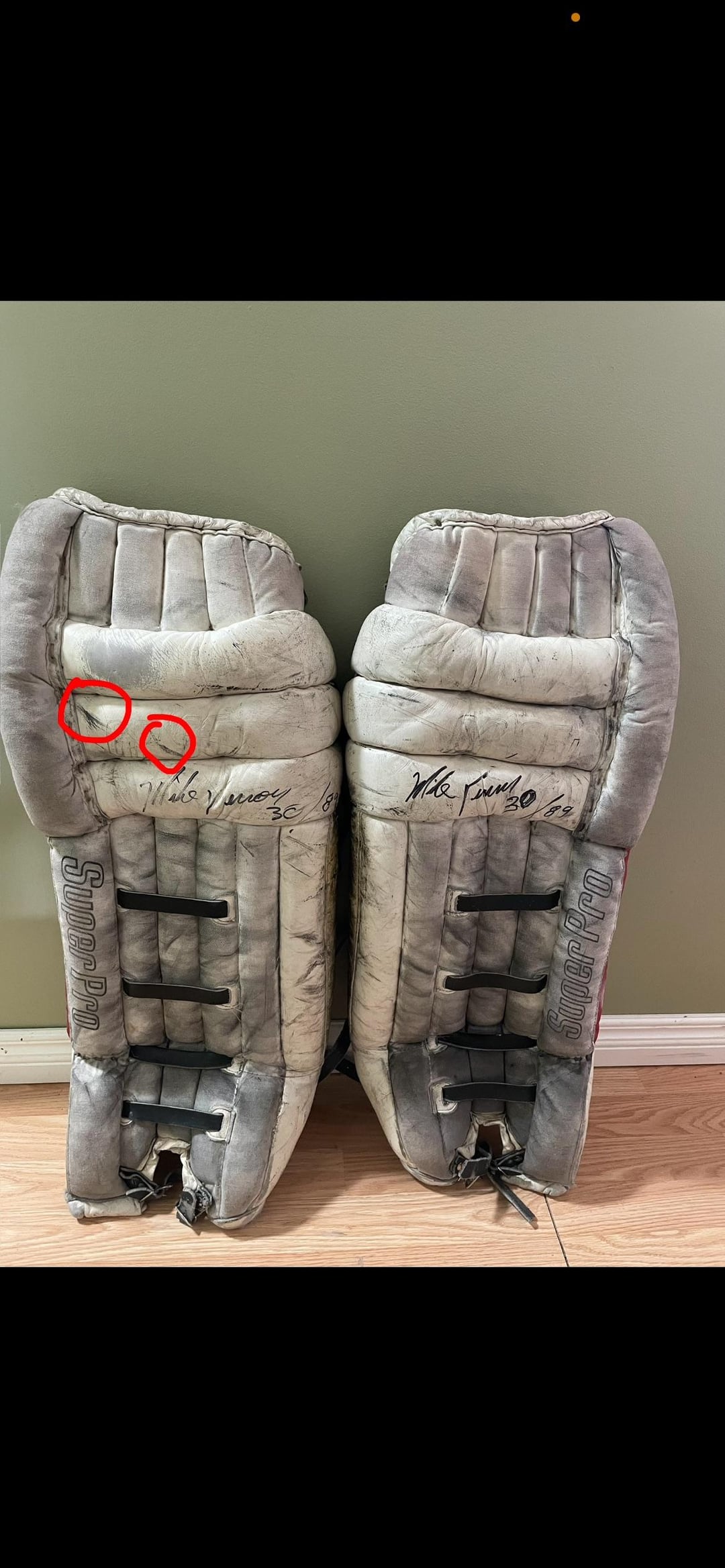Ma famille possède les jambières de but de la Coupe Stanley de Mike Vernon. Mon père et mon grand-père travaillaient comme entraîneurs pour les flammes et lorsqu’ils ont remporté la coupe avec eux, mon père a pu récupérer les pads des micros. Ils ont été gardés à l’écart pendant près de 37 ans jusqu’à récemment, lorsque mon grand-père est décédé en 2022. Que vaut quelque chose comme ça pour le bon collectionneur ? Les deux blocs sont signés et datés par Mike.