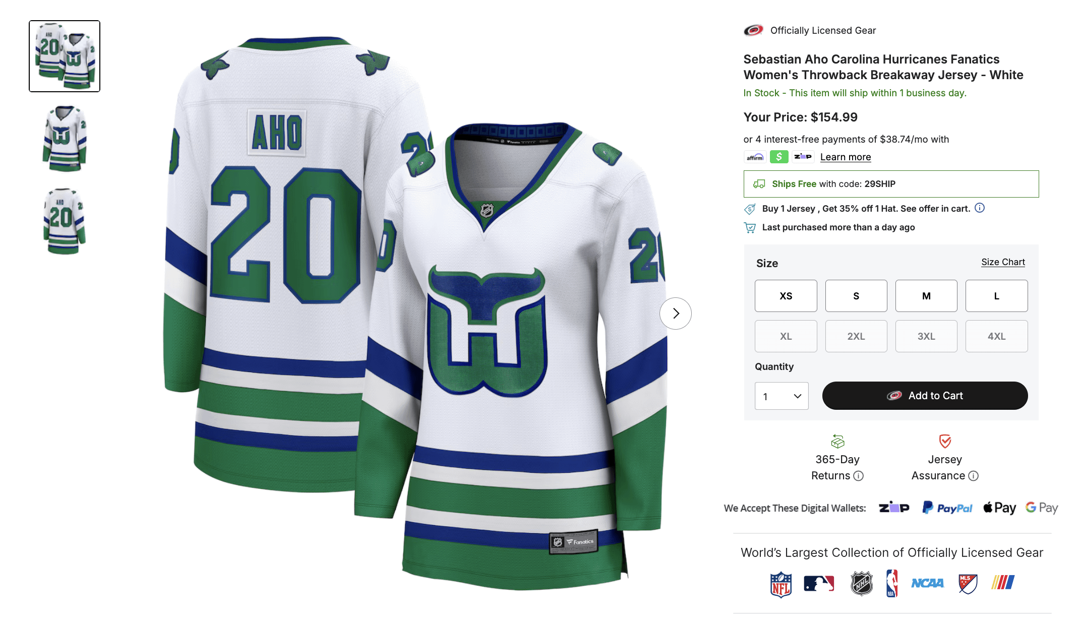 J’ai regardé Fanatics, et un rapide coup d’œil à la boutique officielle de la LNH ressemblait à la même chose. Tout ce que j’ai pu trouver, c’était un maillot blanc des Aho Whalers pour femmes, et cela ne suffira pas.