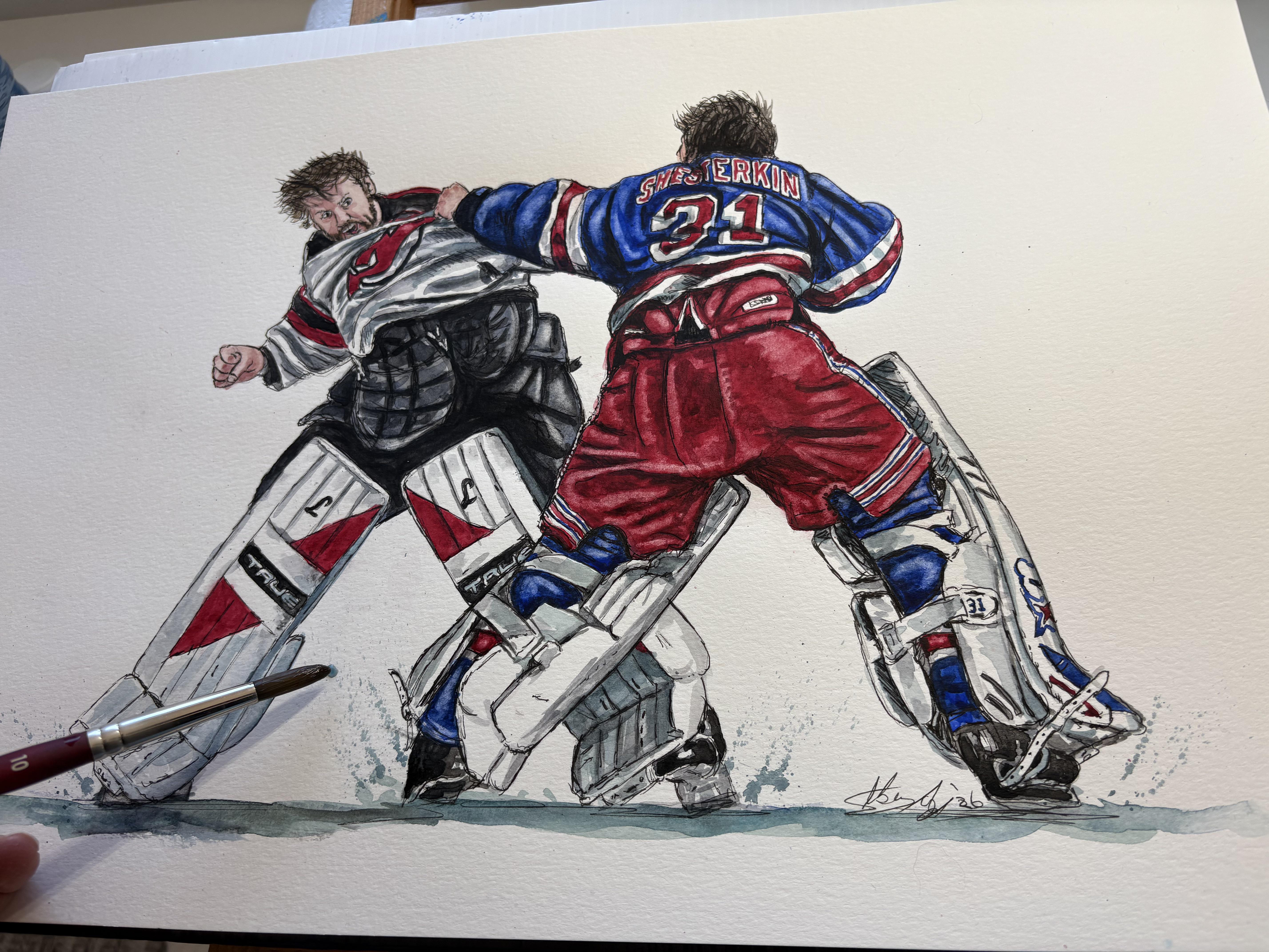 newyorkrangers #newjerseydevils #goaliefight #nhl