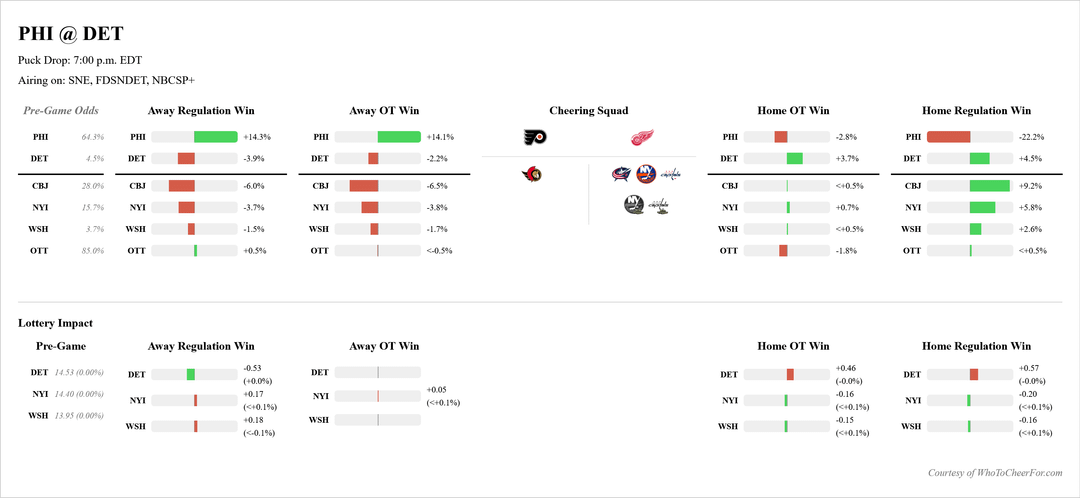 Amazing to see how little a CBJ PHI DET and even NYI win affects our boys. The only thing that hurts us is a regulation loss.