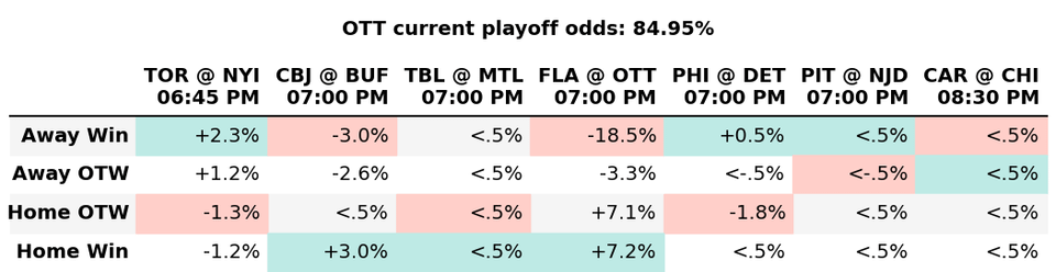 Take in if NYI, DET, and CBJ all lose in regulation, and we win today, we could clinch with getting 2 points in the next 3 games…