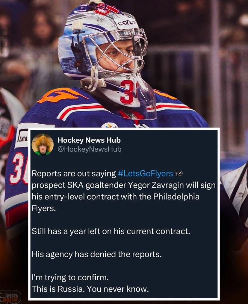 [HockeyNewsHub] Des rapports indiquent que le gardien de but espoir #LetsGoFlyers SKA, Yegor Zavragin, signera son ELC avec les Flyers de Philadelphie.