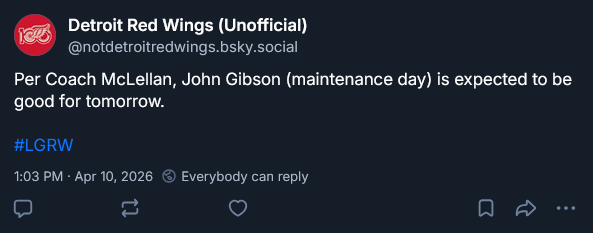 [Detroit Red Wings] Selon l’entraîneur McLellan, John Gibson (jour de maintenance) devrait être bon pour demain — daKrut Association de l’EstAtlantic DivisionAtlantique DivisionDetroit Red WingsEastern ConferenceRed Wings de Détroit 5 Comments TheBrothersClegane 2 semaines ago *exhales* Independent-Silver57 2 semaines ago Anything but calling up Cossa The_ManWithNoName 2 semaines ago 6 out of the last 21 games he’s been unable to finish due to injury or performance. Thats a bit concerning but im glad he’s okay. He seems to leave the game every time someone touches him. Polish-Proverb 2 semaines ago Good for tomorrow, but good tomorrow? UsualHendryBeliever 2 semaines ago Oh, praise the hockey gods. Write A CommentVous devez vous connecter pour publier un commentaire.