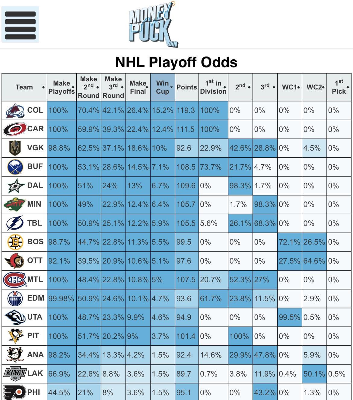 It’s always been a stupidly flawed system. The one year the Flames had a higher % chance to win the cup even when they were nearly mathematically eliminated than a team firmly in the playoffs.