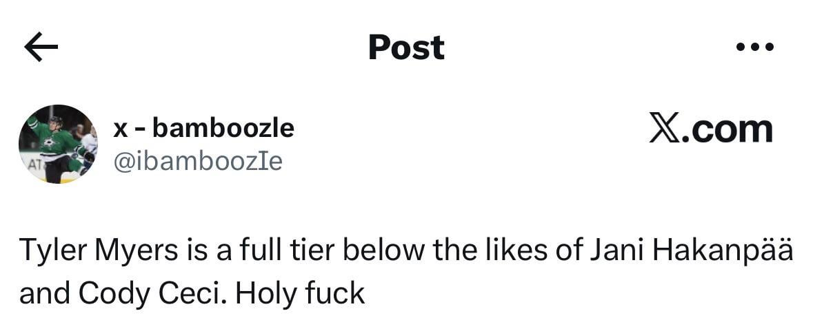 I’ve seen decidedly mixed opinions by Stars fans on Myers. Was browsing their sub about a week ago and seeing moderate praise for him. Chaos giveth and taketh away, I suppose.