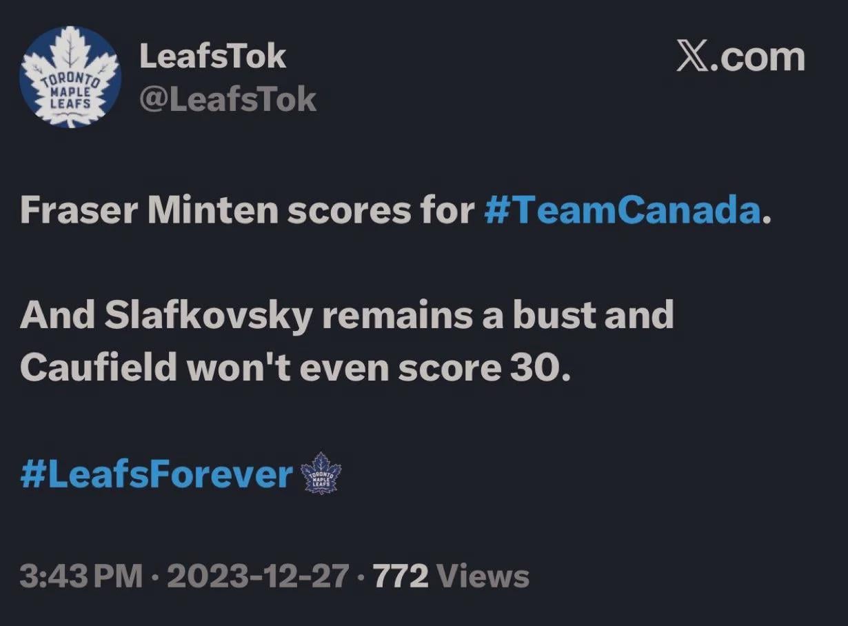 can we stop posting slop lol who cares what a ragebaiting Leafs fan twitter said years ago