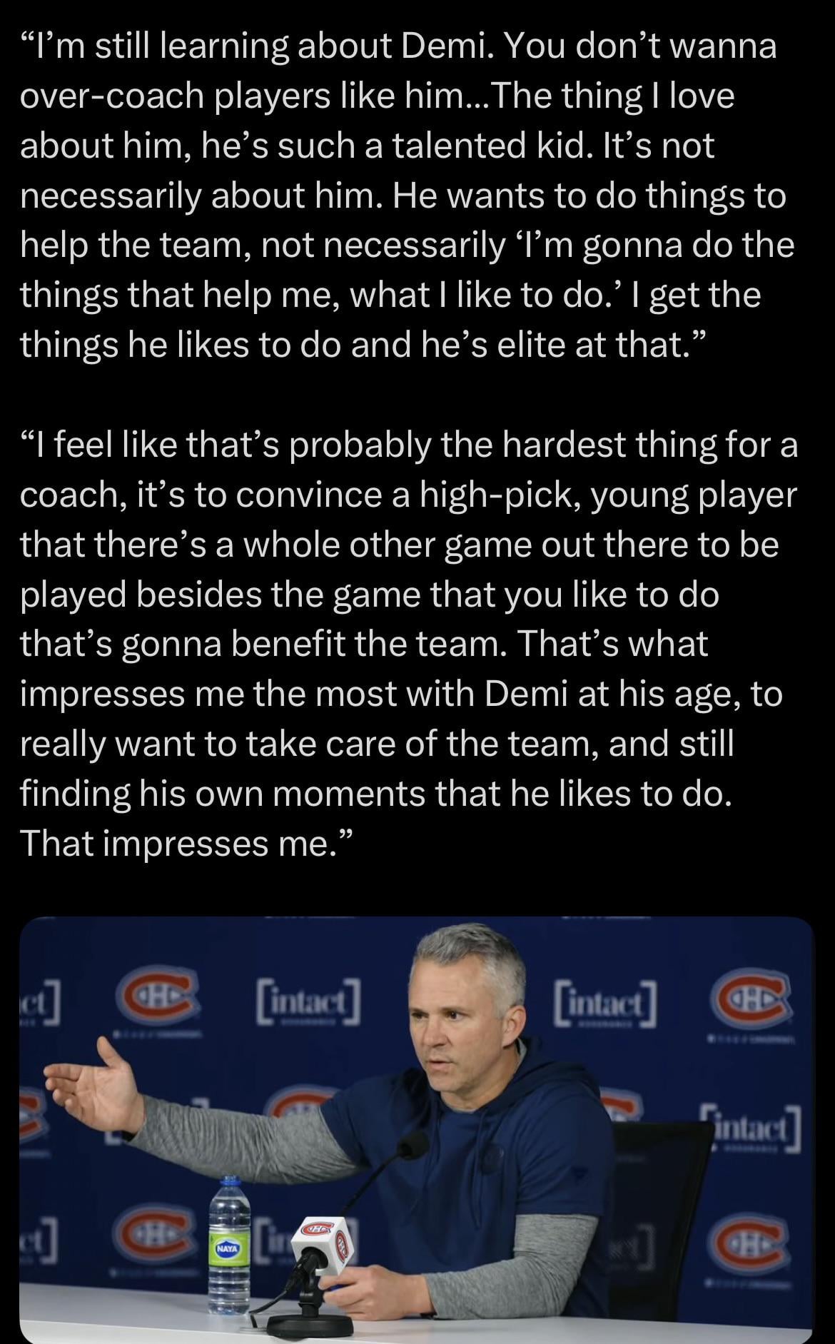MSL aujourd’hui sur Ivan Demidov : « J’en apprends encore sur Demi. Vous ne voulez pas trop entraîner des joueurs comme lui… Ce que j’aime chez lui, c’est un enfant tellement talentueux. Il ne s’agit pas nécessairement de lui. Il veut faire des choses pour aider l’équipe… »
