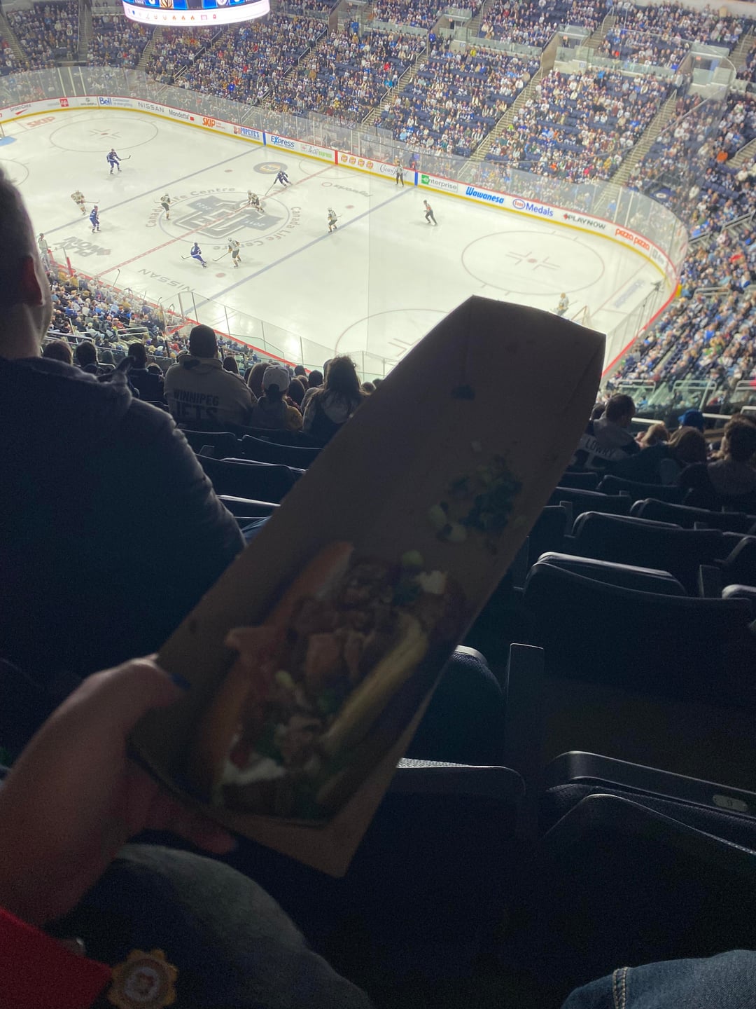 Ce fut l’une des meilleures expériences que j’ai vécues lors d’un match de hockey, et cela a consolidé les Jets comme l’une de mes trois meilleures équipes. Je suis heureux d’avoir pu assister à une soirée à trois points de Mark Scheifele et à Kyle Connor faisant des choses avec Kyle Connor (j’ai découvert le "Kyle baise Connor" meme en discutant avec des fans dans les tribunes). J’ai aussi gagné un bâton de hockey Cavendish vert lors d’un pop-up pendant l’entracte de ma chasse au "Mon premier jeu" certificat!