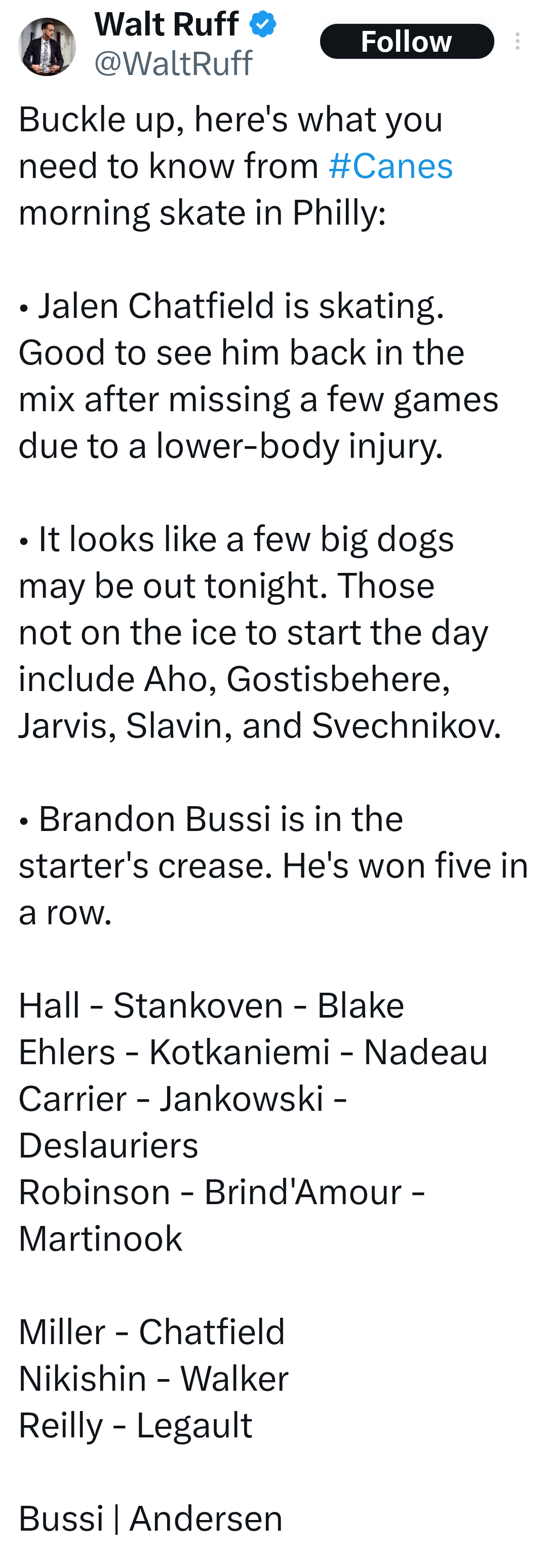 As good as it is to see their « top line » absent. The line that will be the top tonight has been their best over the last 10 games. Hall-Stank-Blake is an absurdly good 2nd line and with the way they are playing is concerning.