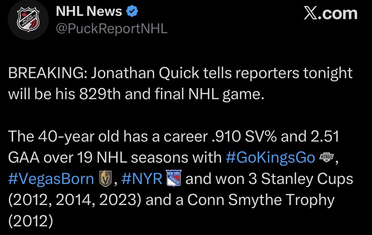 Legend. Thank you, Jonathan Quick! 🫱🏼🫲🏽