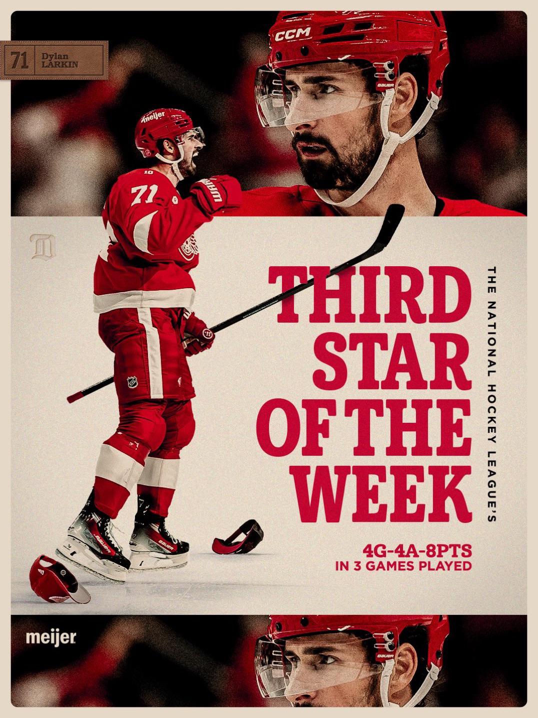 Dylan Larkin est la troisième étoile de la semaine dans la LNH !