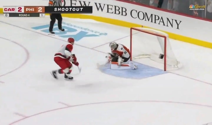 Bien sûr, bien sûr le MVP de cette équipe met en place une masterclass en OT puis en shootout pour envoyer cette équipe en playoffs.