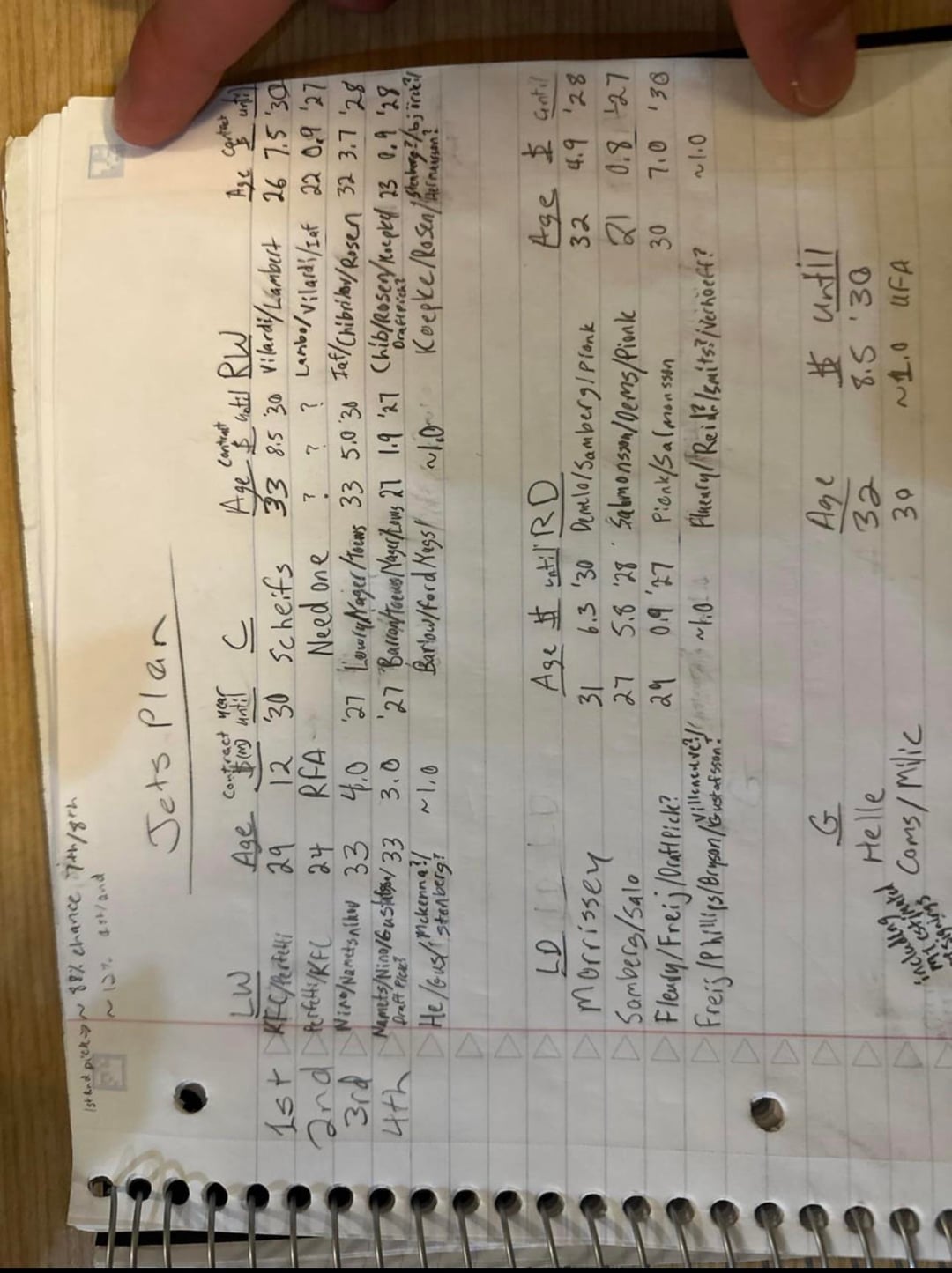 Ne pensez pas que nous ayons besoin de faire beaucoup de signatures ou d’échanges en profondeur, avec nos 8 meilleurs choix au repêchage fournissant probablement de la profondeur, des 6 derniers vétérans fiables comme nino, namets, gus, lowry, toews, barron, iafallo, keopke, chibrikov et profondeur d fluery, salo, demelo, bryson, tous signés pour la plupart jusqu’en 2026-27, et de solides perspectives à venir.