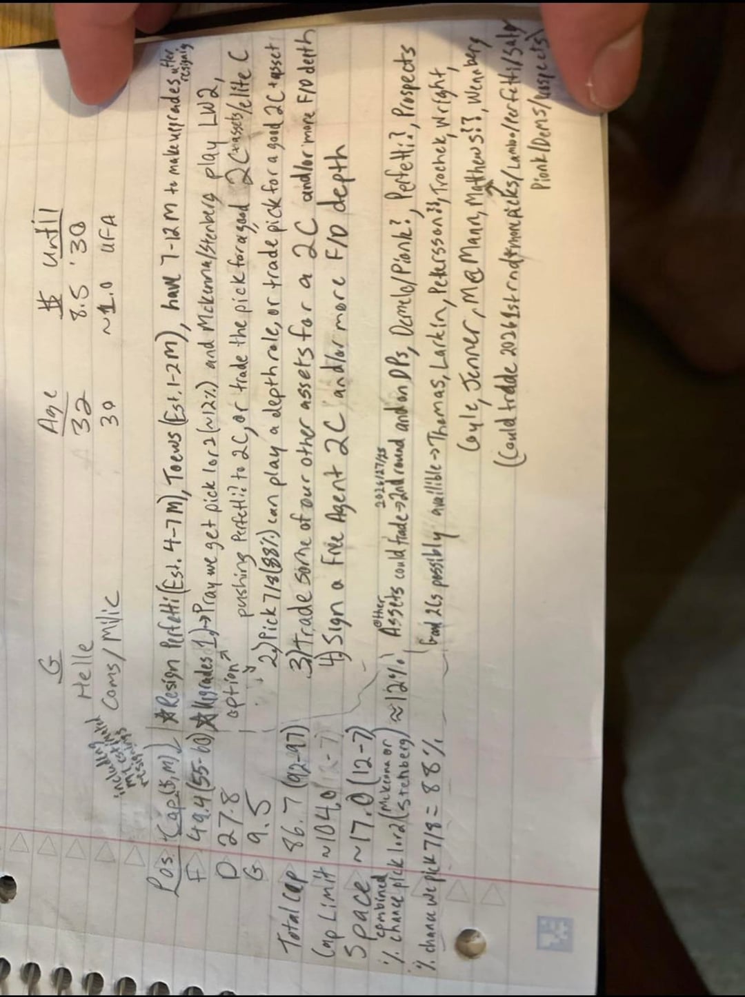 J’ai noté leur âge, la valeur du contrat et l’année jusqu’à laquelle il dure, ainsi que nos situations de plafond et de sélection pour l’intersaison 2026, et quelques notes sur ce que je pense de leurs options. Nous devrions disposer de 7 à 12 millions d’espace de plafond pour jouer avec cette intersaison (en supposant et en prenant en compte que nous démissionnons des perfetti). remarque : les statistiques concernent le premier joueur répertorié à chaque emplacement, avant la barre oblique / .