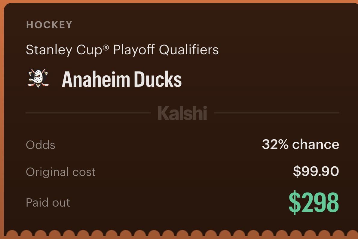 I screwed up and predicted us on the Stanley Cup Champ market, it’s down like 40% from when I opened the position 😭