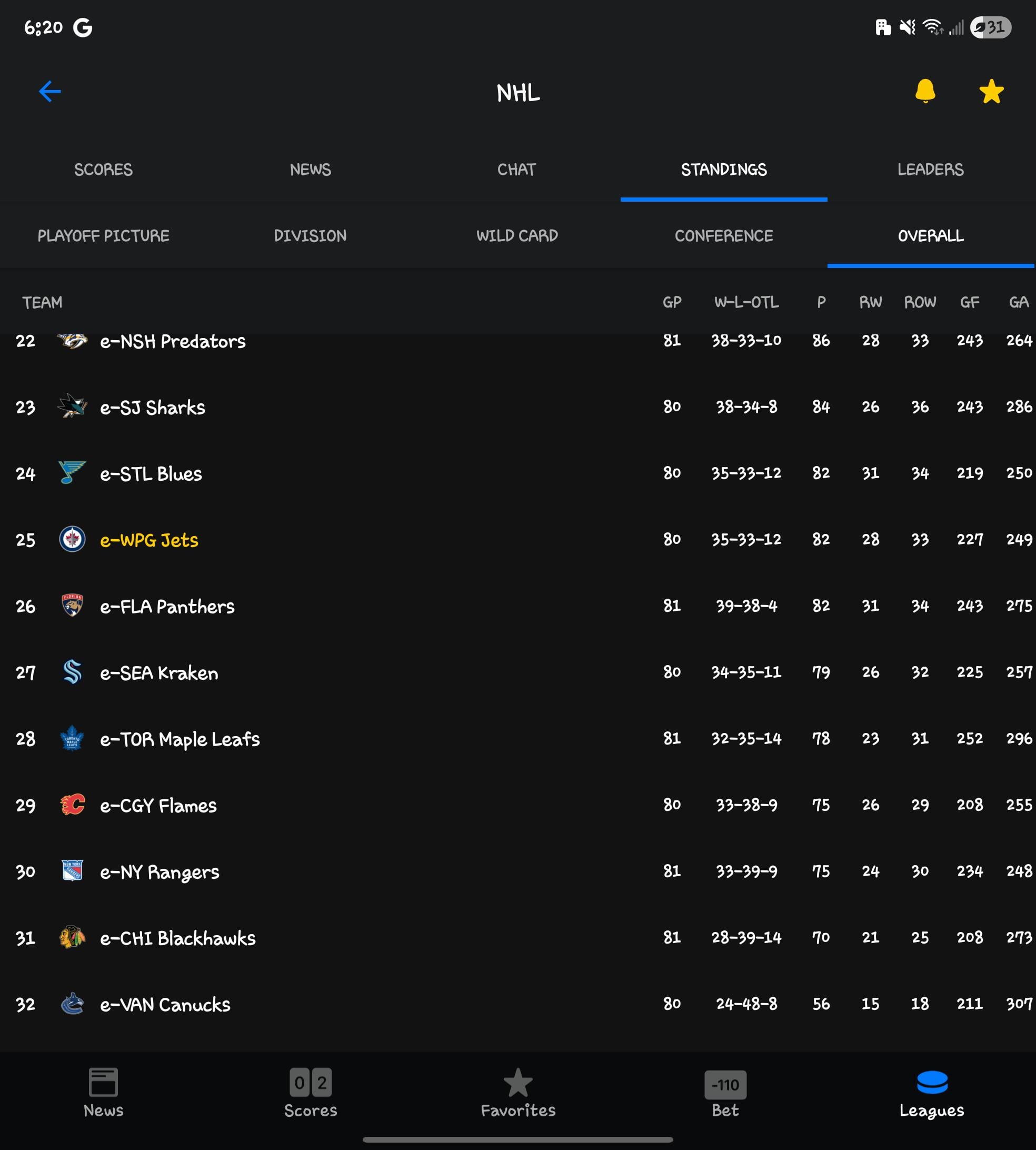 Potentiel de swing de 5 points en 2 matchs… en espérant que nous puissions nous asseoir en 7e et en proie au 6e… en nous préparant pour le 8e… nous serions déçus 9-11.