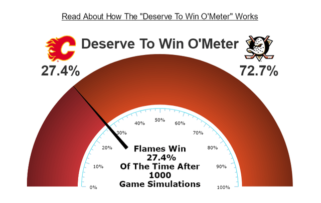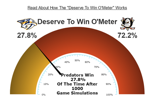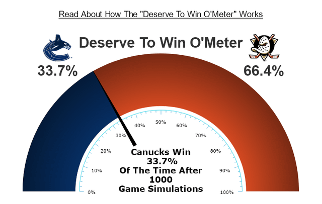 Les Ducks ont une fiche de 1-4-1 lors de leurs 5 derniers matchs et ont au moins 66 % dans le Deserve to Win O’Meter (MoneyPuck.com)