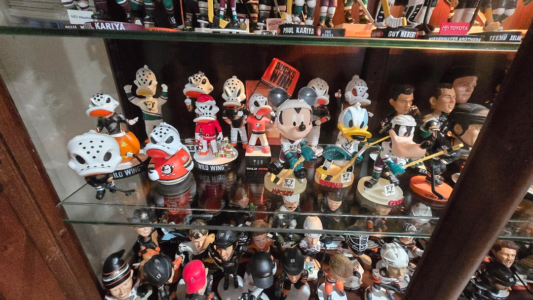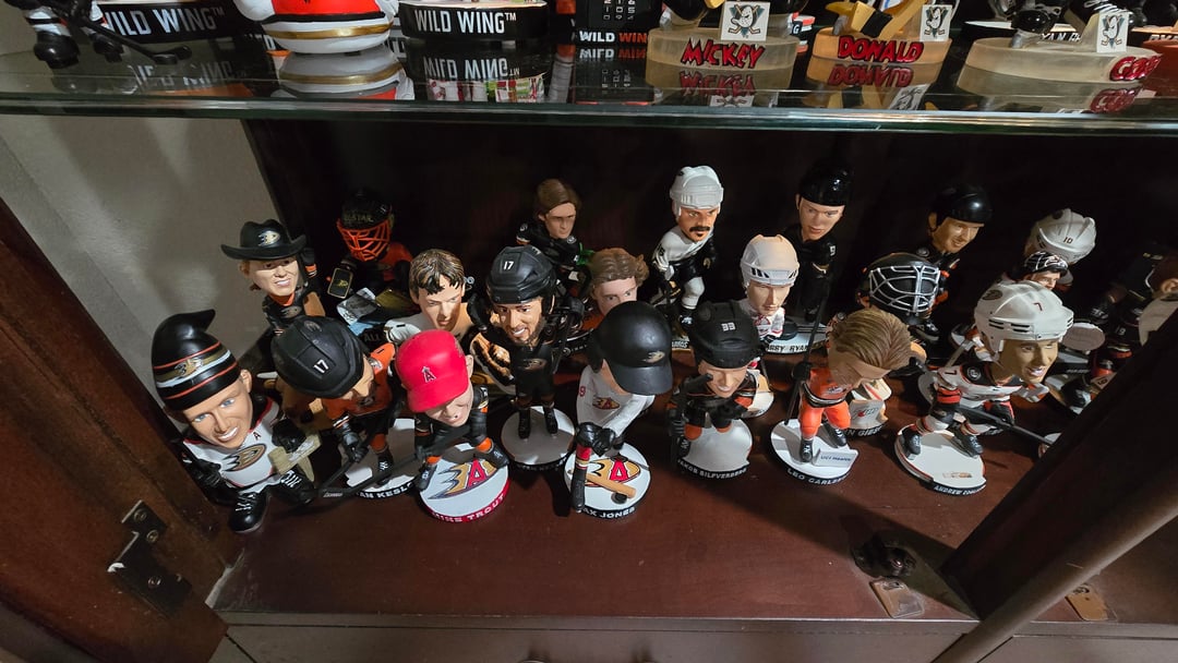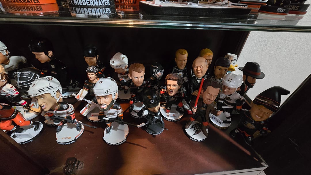 J’ai fait quelques réarrangements. Il y a actuellement 105 figurines entre les Mighty Ducks/Ducks (83), les affiliés juniors Gulls/Cincinnati Ducks (19), les ligues mineures libérées (Getzlaf, McTavish, McQueen, Ryan), 2 Matt Doherty (Lester Averman du film MD) et 1 San Diego Chicken.