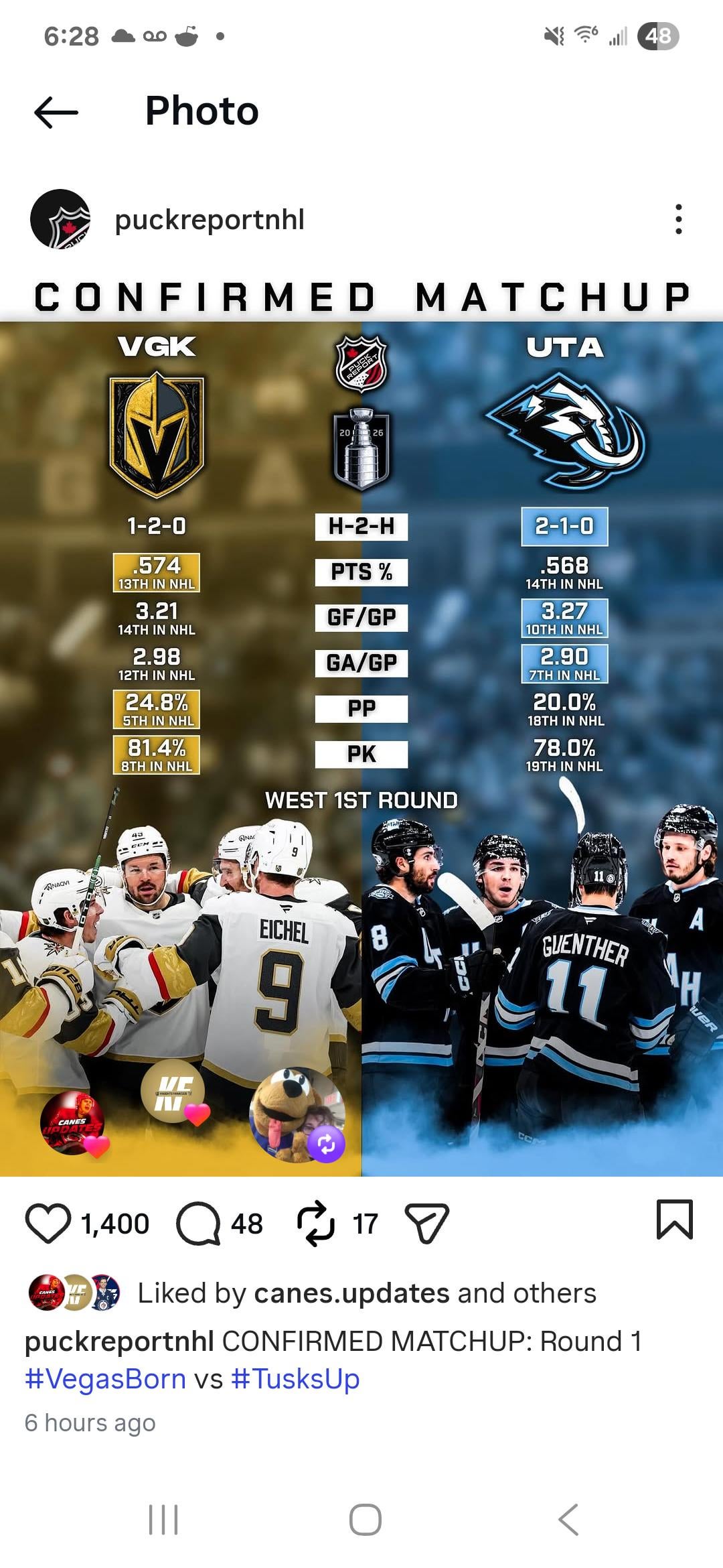 Utah Mammoth fan here. I am just so happy to be in the playoffs and feel what’s it’s like to make a run at the Stanley cup. Your knights have got hot at the right time and the new coach has definitely added a spark. This is gonna be stressful and fun!! Good luck! Tusks up, Go Mammoth!