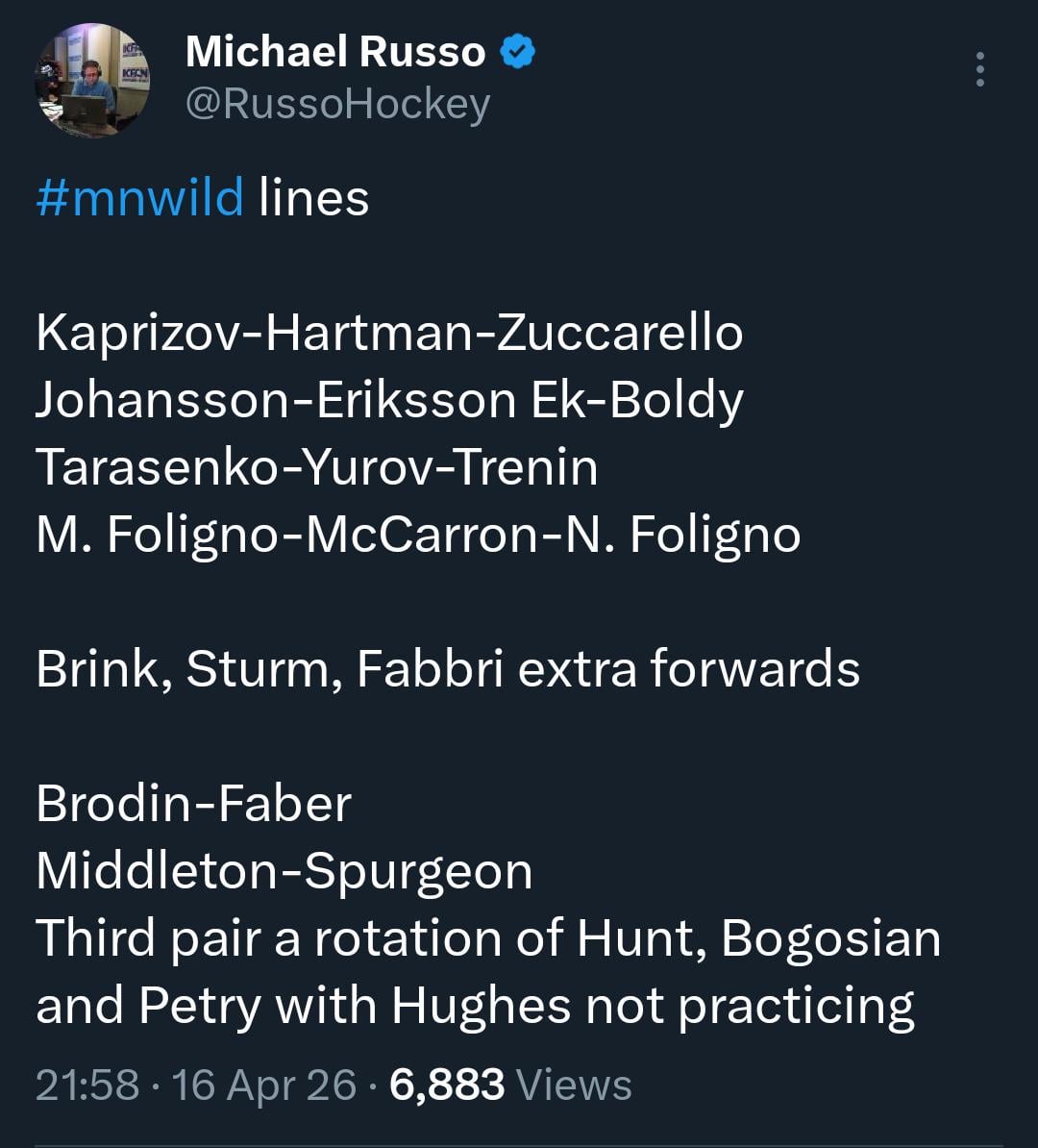 If the Foligno Mick line plays at all, we are losing this series. Calling it now. It will be a dive fest.