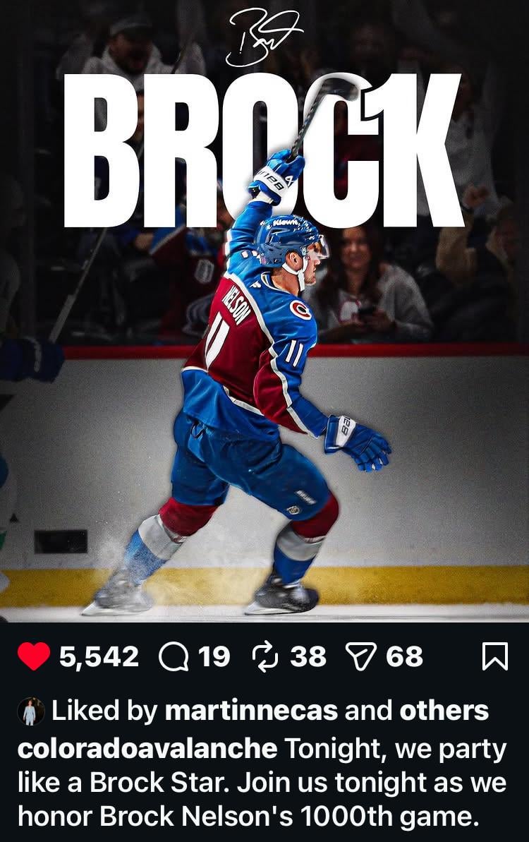 Le 1000e match de Brock sera honoré ce soir, ainsi que le Trophée des Présidents, je crois — Best_Ad_7503 Association de l’OuestAvalanche du ColoradoCentral DivisionCentrale DivisionColorado AvalancheWestern Conference 6 Comments bchoub 3 jours ago  From serving tours since the late 1920’s to playing in his 1,000th game in the NHL, thank you for your service Col. Nelson Minimum-Beautiful840 3 jours ago  themrs0830 3 jours ago  I found this footage of Brock. Minimum-Beautiful840 3 jours ago So glad I’ll be watching it on Altitude+. I’ve never seen a President’s Trophy awarded before. flashdurb 3 jours ago “Brock, with your 87th season coming to a close, any thoughts about retiring?” Brock:  Best_Ad_7503 2 jours ago Sounds like Coach Bednar will be back as well tonight! Write A CommentVous devez vous connecter pour publier un commentaire.