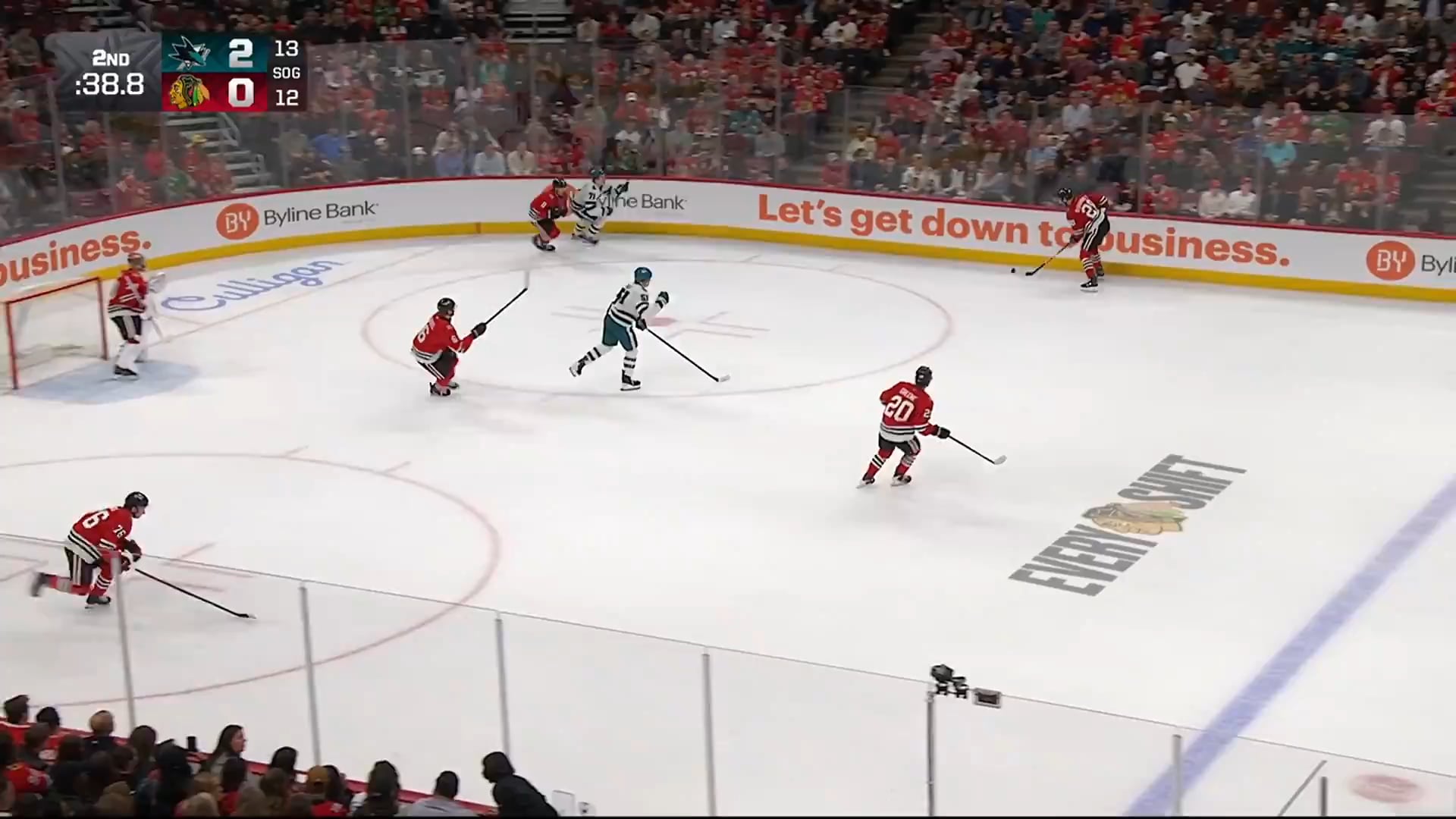 Sam Rinzel marque son 4e but de la saison sous un angle aigu après que la rondelle se soit glissée sous Yaroslav Askarov