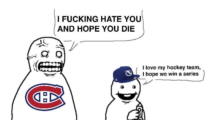 S’il vous plaît, allez voir r/AtlantiqueMemeWar nous avons besoin de plus de recrues chez les Bolts pour contrebalancer le nombre massif de partisans des Canadiens qui circulent partout en français.