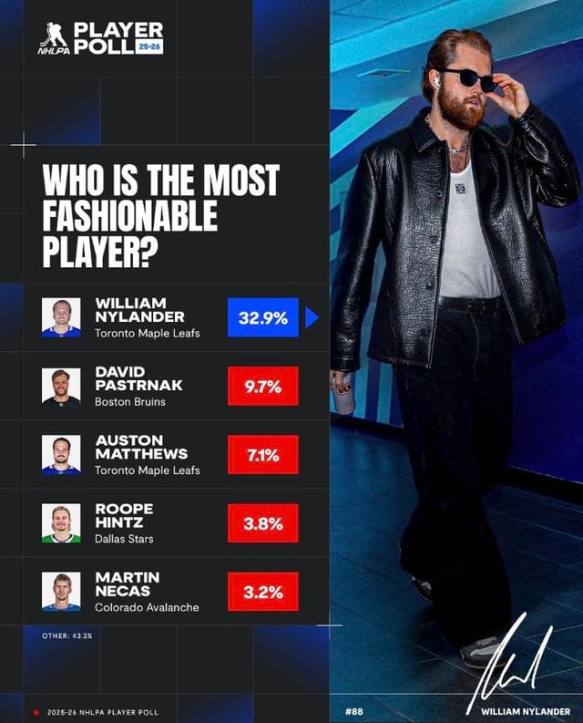 The fact that Sergachev didn’t even make the top 5 shows how little fashion sense the rest of the league has. Dude shows up and shows out every single game, he has incredible style.