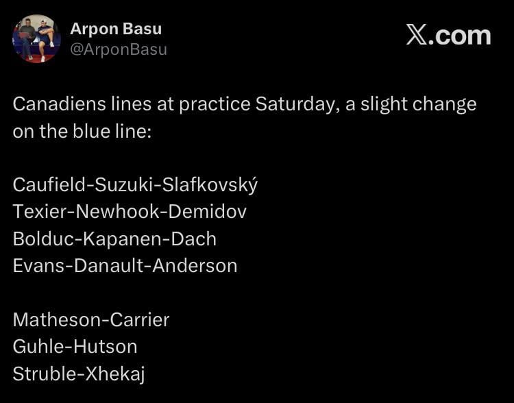 [Apparently](https://xcancel.com/charles__alexis/status/2045510458916868578) practice was closed to media until 10:15am, what are they hiding? Dobson? different lines? different PP/PK?