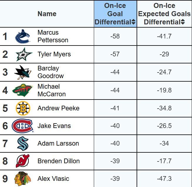 Boeser has the worst raw rating on the team, but Karlsson’s rating per 60 is significantly worse once you account for ice time and quality of competition.
