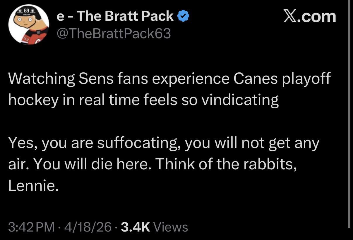 I don’t know what “think of the rabbits Lennie” means. Edit: fucking duh. Steinbeck. I’m in hockey brain and that took a minute to click haha