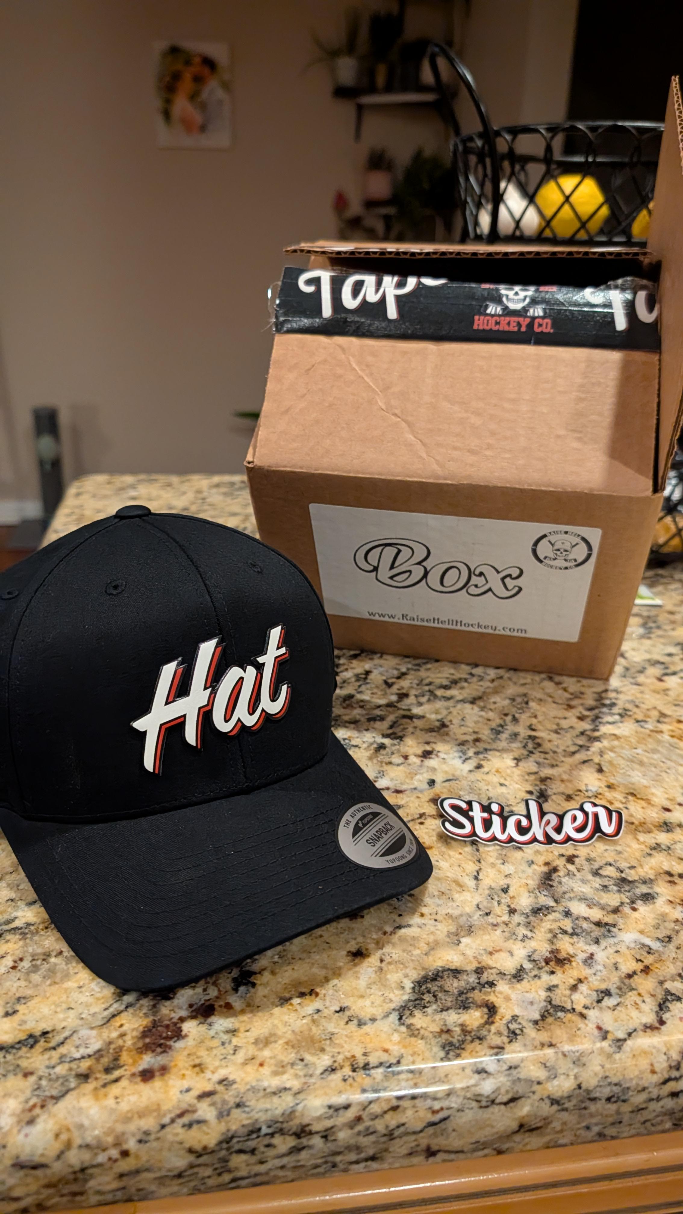 Mon chapeau « chapeau » est arrivé aujourd’hui dans sa boîte « box », scellée avec du ruban adhésif « tape », avec un autocollant « sticker » gratuit !
