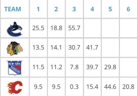 if specifically the 12th place team (new jersey) wins the first draw, they move to 2nd overall. the canucks get locked into first overall. if calgary wins the next pick, they move up to third. this same logic is why theres a lot of teams with a very low probability of third overall