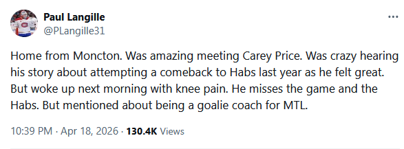 The Habs rebuild under HuGo must be legit promising if it got Carey so excited that he wanted to join in despite all his injuries.