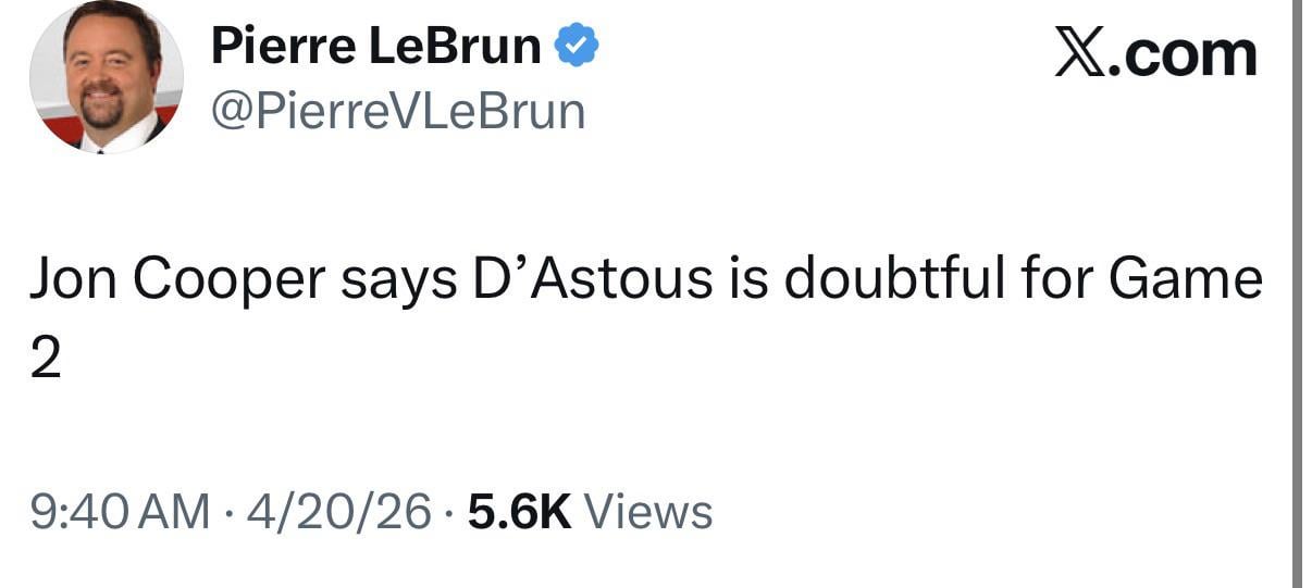 Apparently Carlile is replacing D’Astous in practice. I thought MTL’s defense was bad with the injuries they have, ours is starting to look the same if not worse. Moser has been bad for weeks now, Raddysh still has lapses defensively, Mistakeberg is still very much prominent. Idk. I’m dooming pretty hard but this D core is not encouraging.