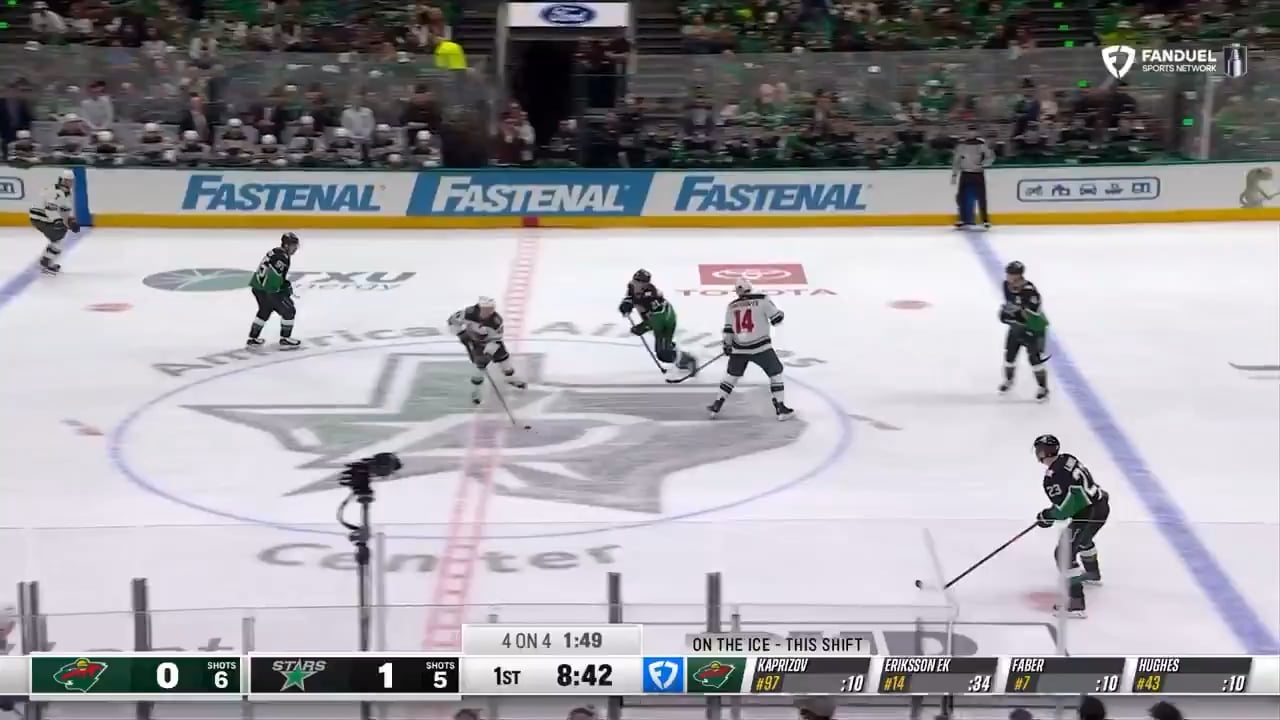 I need to find this broadcast, I’m watching ESPN or the Stars network and I was wondering why they’re about to **m all over the booth with anything the Stars do and Faber with this gets a modest call.