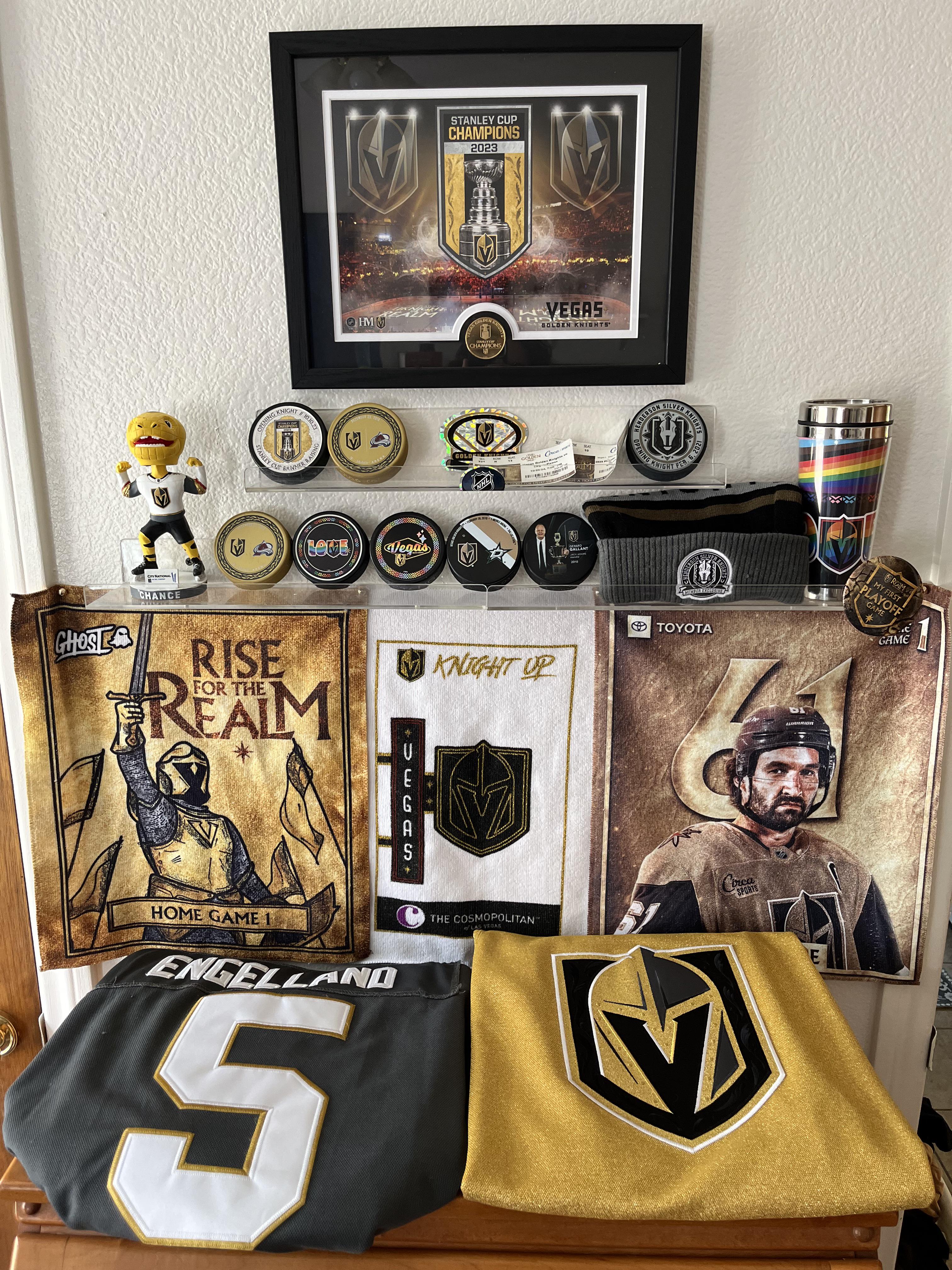 That Stanley Cup banner is beautiful setup – I’m jealous about those game pucks collection you got there.