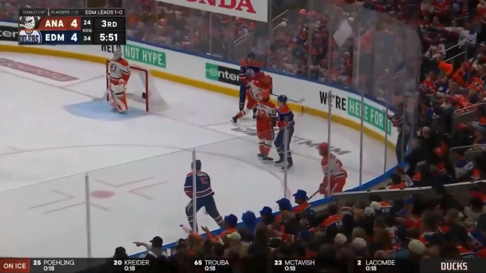 If Edmonton’s fans are going to throw rotisserie chickens onto the ice, I think that Anaheim’s fans should throw a literal oil slick into the ice next game to retaliate