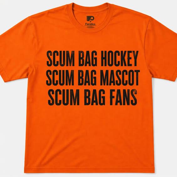 That shirt is ASS ! A real flyers fan would never wear that. Also scumbag is one word idiot