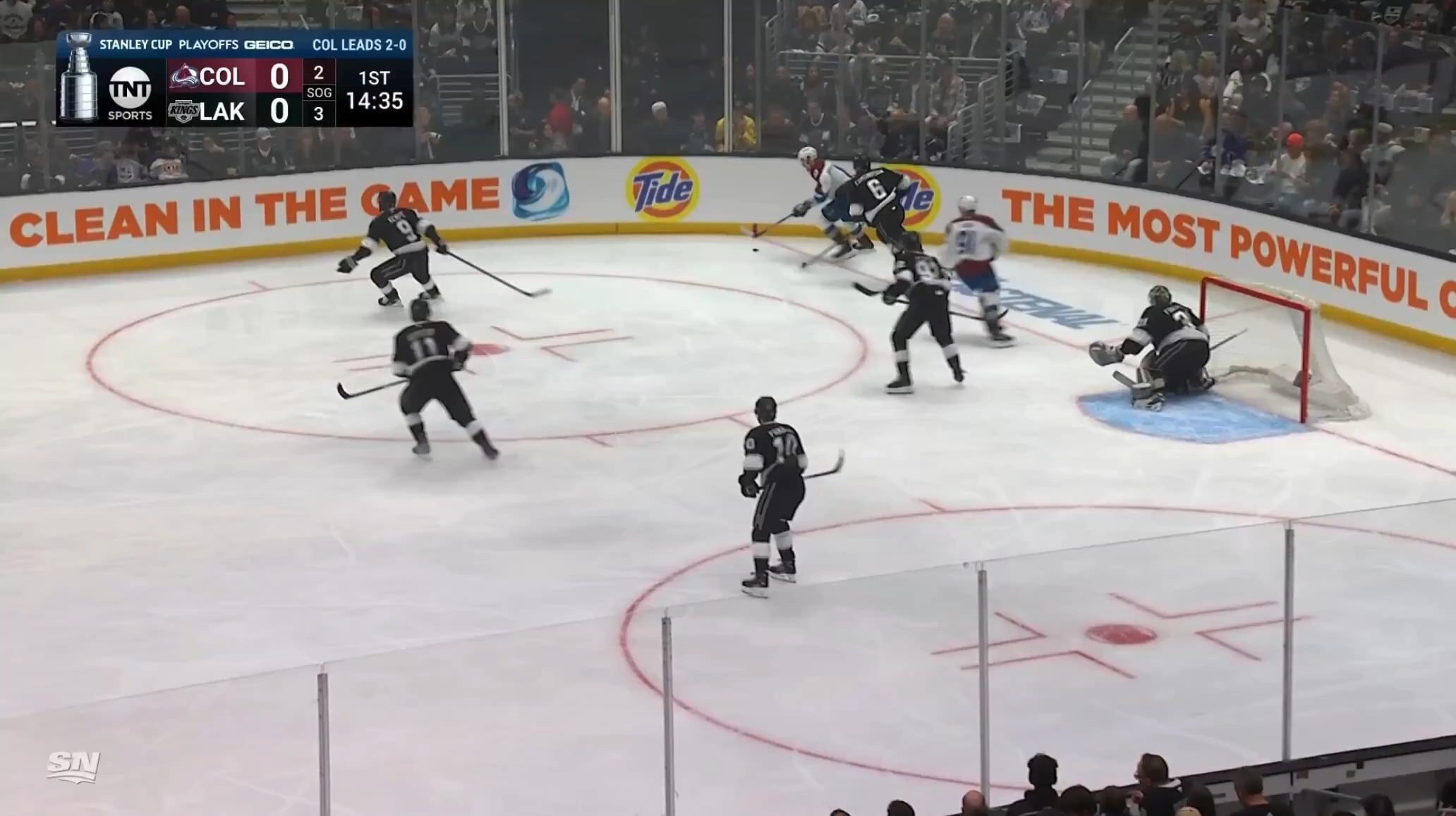 🛘 [1] – 0 👑 — Landeskog en tire un, rebondit sur les planches dans le patin de Forsberg et va dans le filet