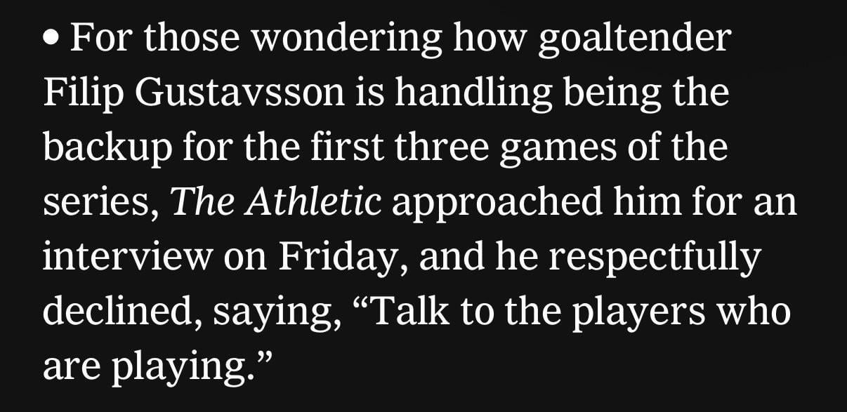 Si quelqu’un se demande comment Filip Gustavsson réagit à la perte de son poste de titulaire.