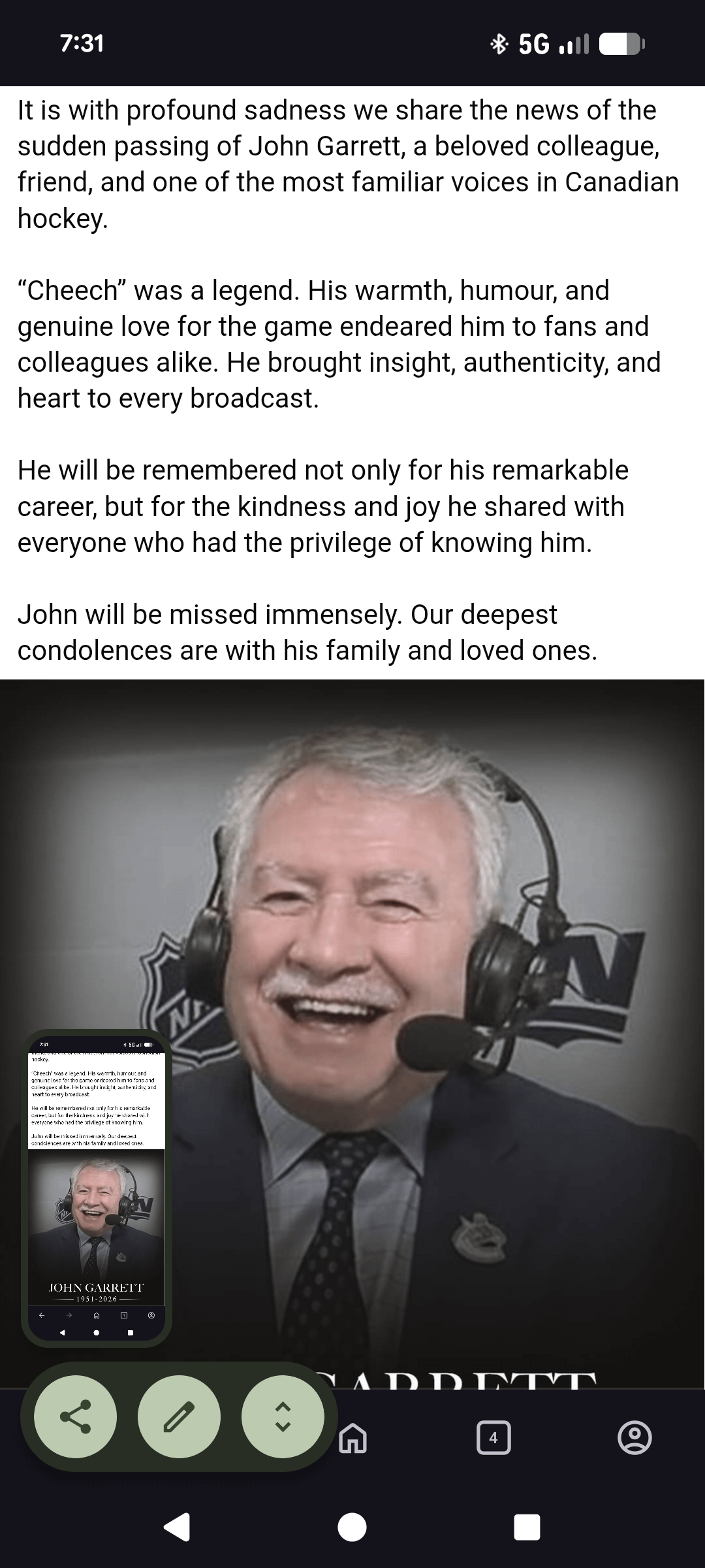 Canucks legend. The broadcast hasn’t been the same since he’s been gone. RIP