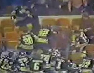 The one thing that prevents this from happening again is that they’ve made glass so much higher that the players wouldn’t be able to climb over it (and vice versa for fans wanting a go at the players). On top of that, you just can’t do stuff like that anymore in today’s world. I remember seeing a clip from a Flames-Oilers game in the late 90s where an Oiler fan dumped a beer on the head coach and one of the Flames players tried to jump over after him, but the whole team held him back from doing so. I think even by then things had changed.