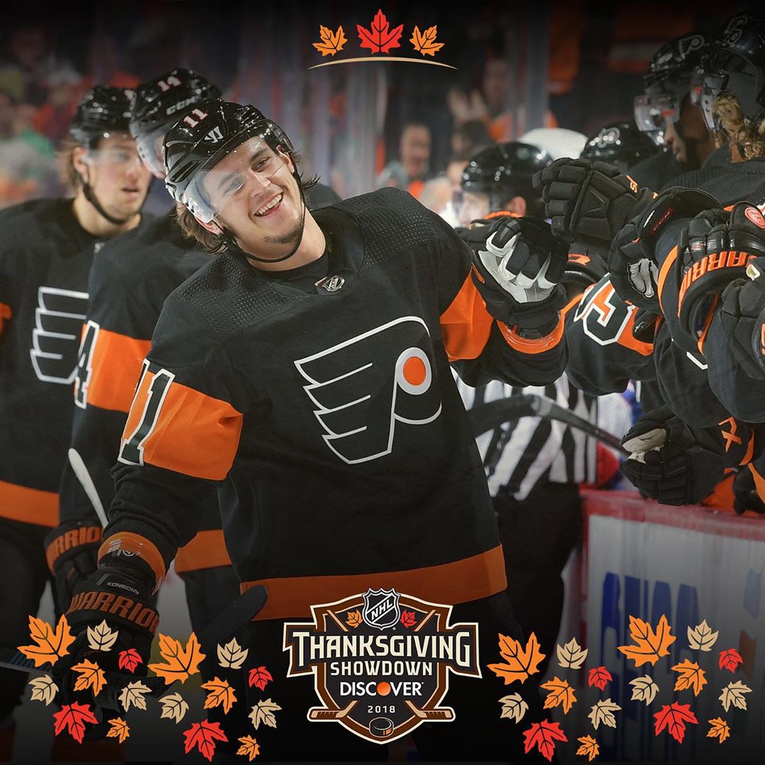 Pas de jour de congé pour ces gars. Les @philadelphiaflyers du tableau sont les premiers à figurer dans le @discover #ThanksgivingShowdown.