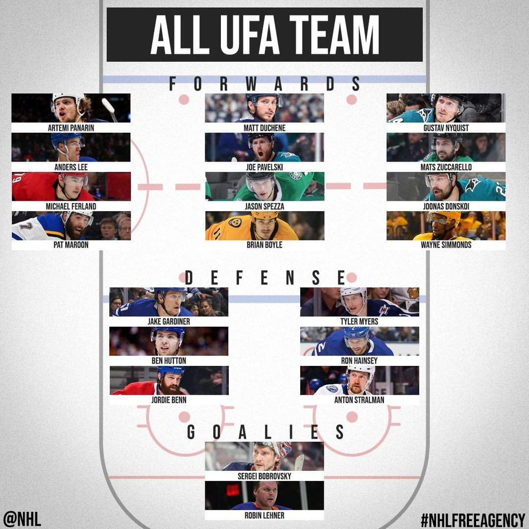Nous vous présentons notre équipe 2019 #NHLFreeAgency UFA. La composition de départ est la suivante: HockeyHockey sur glaceHockeySurGlaceIce HockeyIceHockeyLA LNHLALNHLigue nationale de hockeyLigueNationaleDeHockeyLNHNational Hockey LeagueNationalHockeyLeagueNHLNHLFreeAgency
