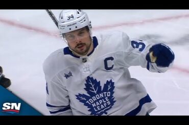 Regardez Auston Matthews des Maple Leafs de Toronto contourner Josh Manson de l’Avalanche du Colorado pour marquer un but de…